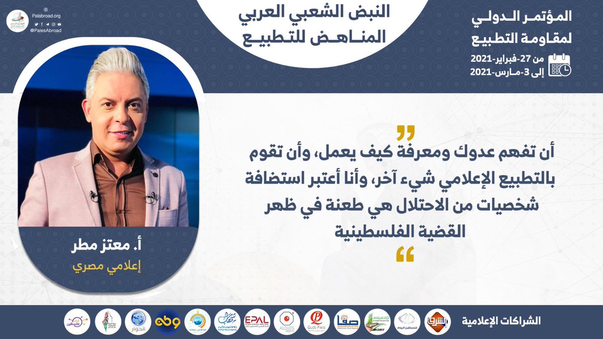 اشترك معنا وادع أصدقاءك لمتابعة الصفحة The latest tweets from @moatazmatar أهلا بكم في الصفحة البديلة الرسمية للإعلامي معتز مطر. معتز مطر هو صحفي وإعلامي مصري ذاع صيته بعد الثورة المصرية عبر برنامجه مع معتز على قناة الشرق، واشتهر بنقده اللاذع للحكومة المصرية بعد الانقلاب العسكري وللحكومات العربية. يمكنكم متابعه البرنامج علي :